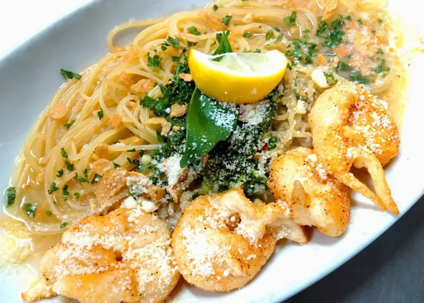 - えびジェノ(キングオブパスタ2024優勝メニュー)バジルの香りと海老の旨味が凝縮された一皿。濃厚ながらも最後まで飽きさせないバランスが絶妙です。