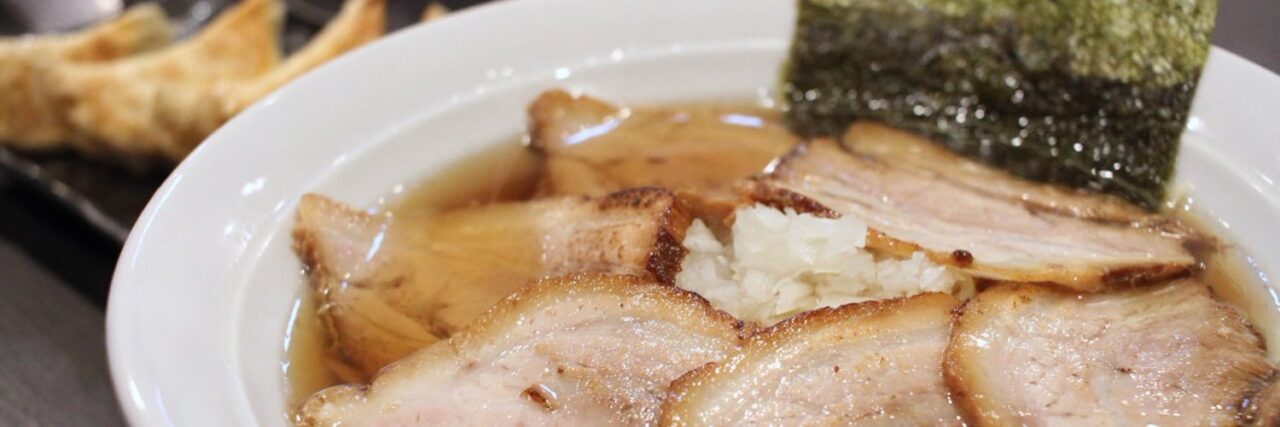村上店主が最も推すのがこちら。国産豚のバラチャーシューを、あえて「極薄」にカット。これはケチっているのではなく、「麺と一緒に口に運んだ時、最も一体感が出る厚さ」を計算し尽くした結果です。