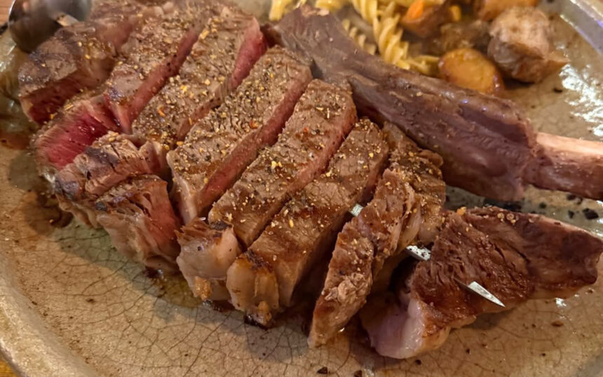 この店の象徴ともいえるのが、200gから最大1kgまで選べる巨大ステーキ。