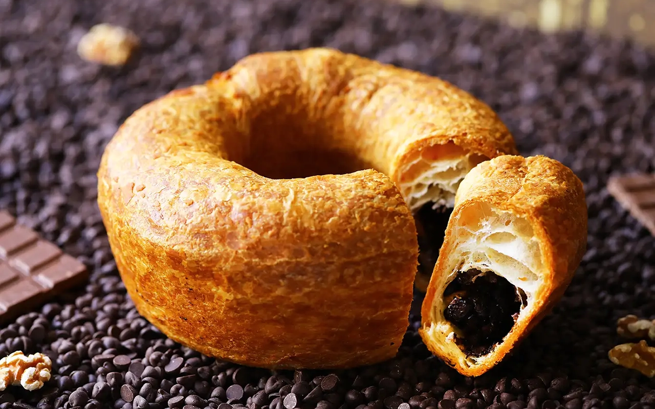 - マジカルチョコリング創業以来の看板商品。フランスパン生地とデニッシュを合わせたような独特の生地に、チョコチップとクルミを贅沢にイン。一度食べたら忘れられないザクザク食感は、まさに魔法の味。