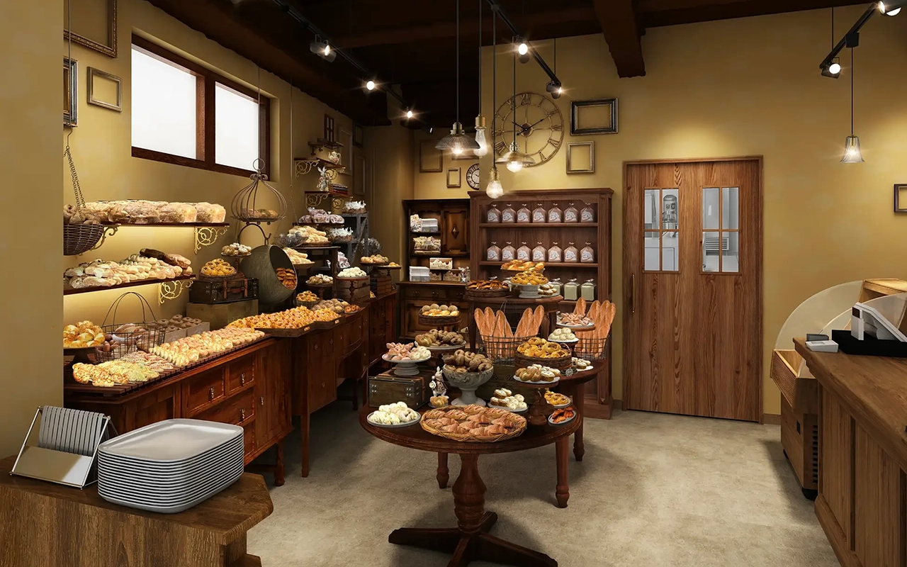 - パンに包まれるレイアウト:店内に一歩足を踏み入れると、ぐるりとパンに囲まれるような特別なレイアウトを採用。焼きたての香りに包まれながらパンを選ぶ時間は、まさに日常を忘れさせる“マジカル”なひとときです。