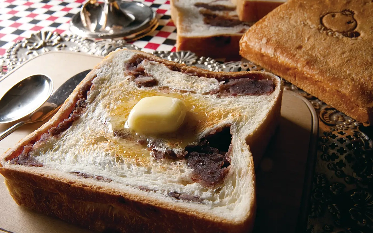 - あん食パン国産小麦を使用したもっちり生地に、甘さ控えめのあんこをたっぷり巻き込んでいます。厚切りにして「追いバター」をするのが通の楽しみ方。