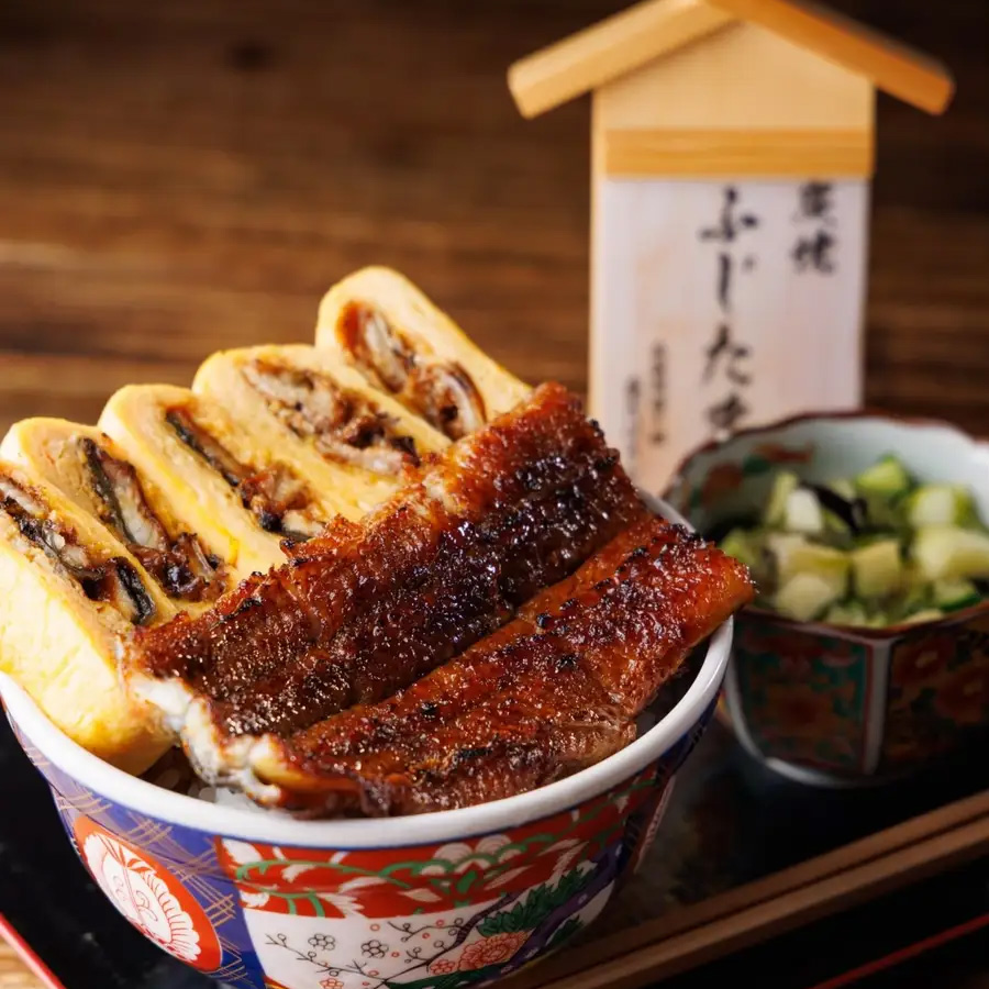 - ふじたま丼:2,800円 贅沢な「うなぎ」と、ふわふわの「うまき(卵焼き)」が一度に楽しめる逸品。