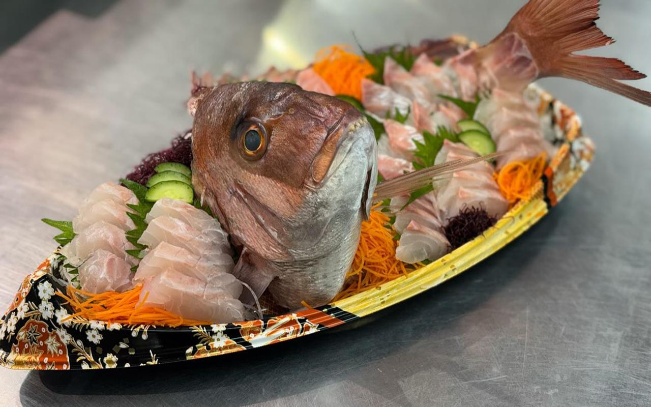 「生鮮漁港川越」という市場内にある、鮮度抜群のお刺身が食べ放題のお店。豊洲・大宮・川越市場からその日に仕入れた新鮮なお刺身が常時12種類以上並びます。