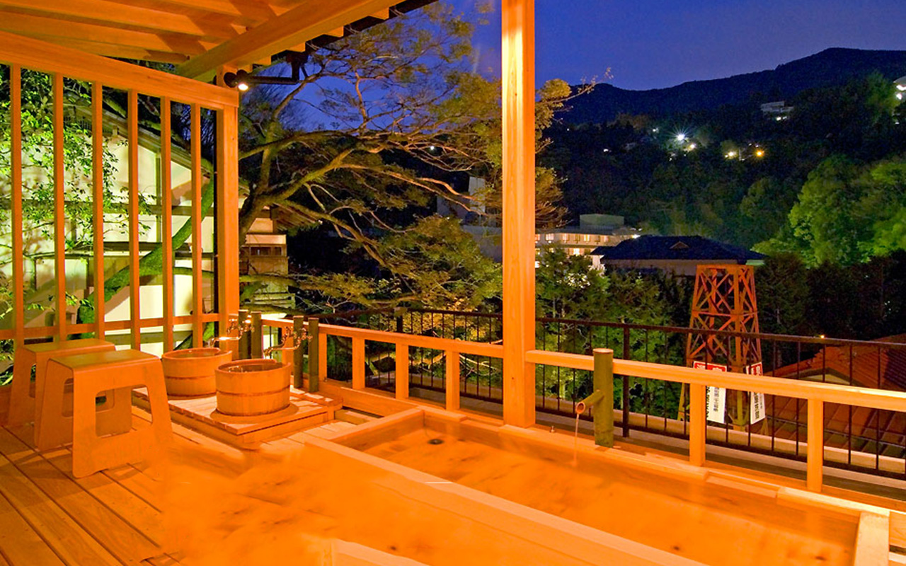 今回は贅沢な貸切露天風呂を堪能。自家源泉100%のかけ流し温泉に浸かりながら、2人は仕事への熱い思いやプライベートの話題で絆を深めました。