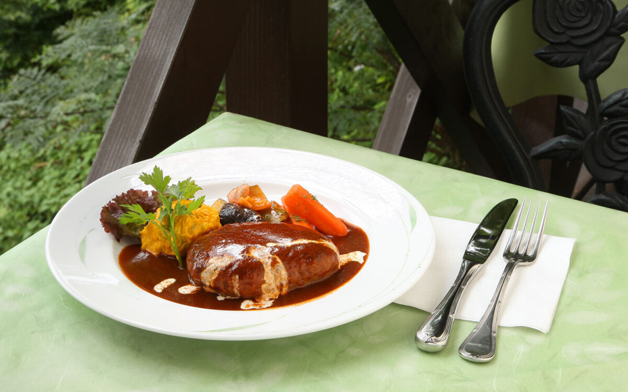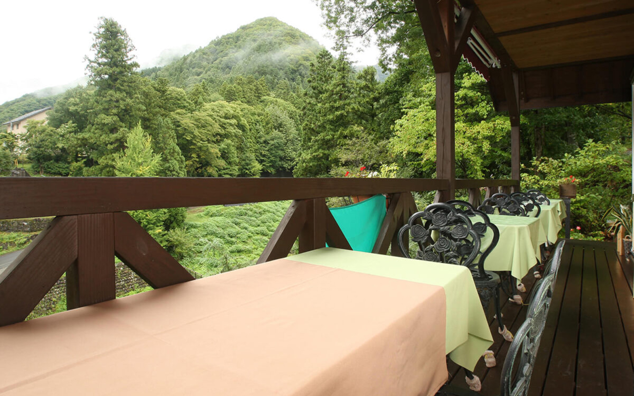 | 人気の秘密 | テラス席からは谷川岳の雄大な自然を眺める ことができ、絶景とともに食事が楽しめます。 |