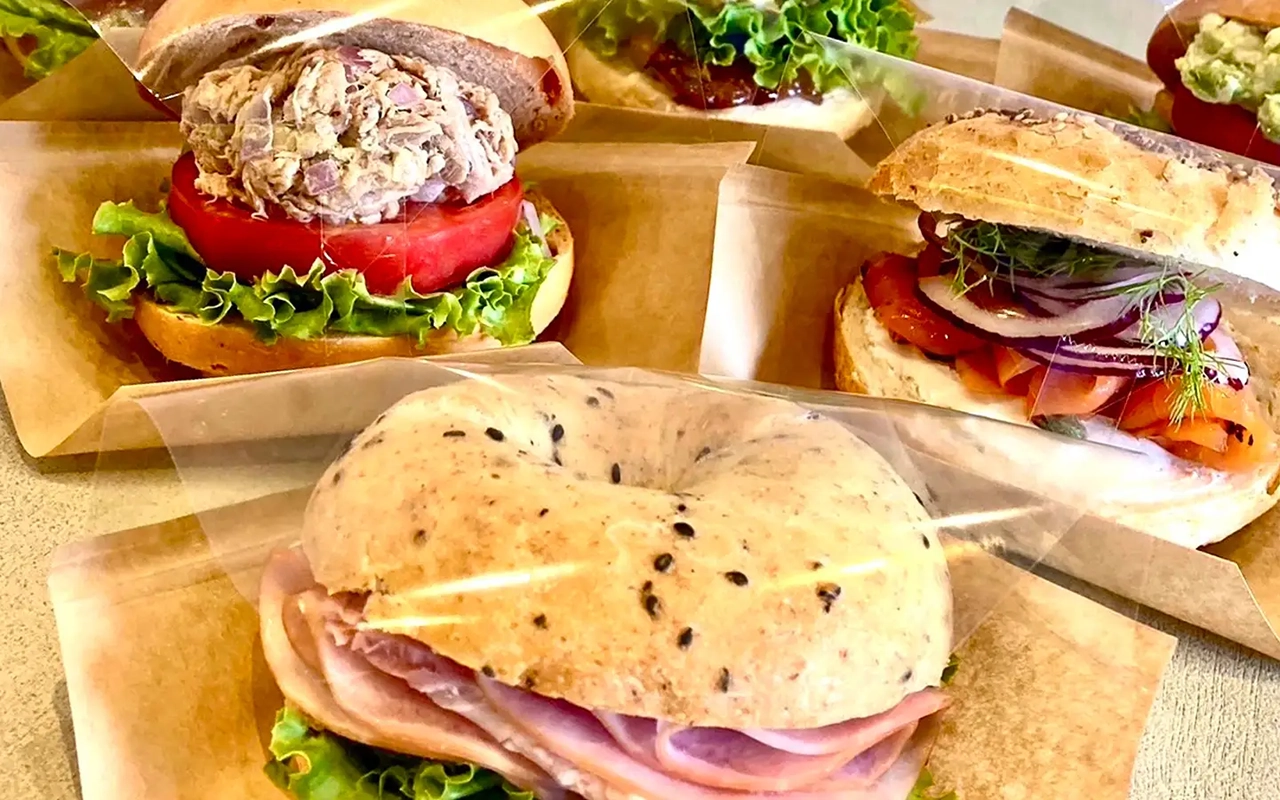 - ベーグルサンド各種:380円~600円(BLT、サーモン&クリームチーズ、あんバターなど)※サンド系はオープン当初は提供数に限りがある場合があるため、お早めの来店がおすすめです。価格やメニューは時期や時勢により変化するかもです。確認をお勧めします。」
