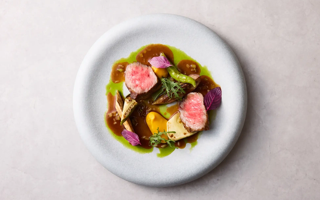 厨房を率いるのは、日仏のミシュラン星付きレストランで研鑽を積んだ宗定和輝シェフ。特に南フランスで培った「自然と調和し、素材を最大限に活かす技術」をベースに、確かな技術と現代的な感性で『Sillage』ならではの料理を創造します。